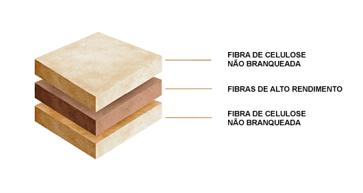 Papelcartão não revestido, capa e verso de celulose não branqueada, miolo de pastas mecânicas de alto bulk. Estrutura sem Coating.